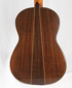 La lutherie est magnifique avec un tour de table fait d’une marqueterie chevronnée et un magnifique palissandre indien en 3 pièces.