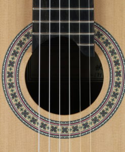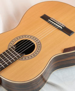 Domenic Roscioli est basé à Adélaide il a commencé à fabriquer des guitares dans les années 90 et fabrique 2 modèles, un modèle Lattice et un modèle Fleta. Voici sa 171e guitare, c’est une guitare lattice.