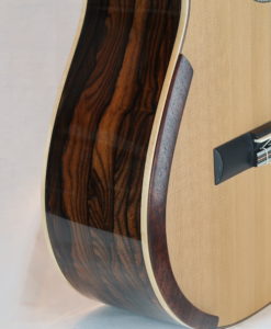 - Des éclisses avec un dos bombé Multi couche en ziricote pour rigidifié l’instrument