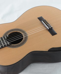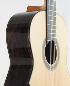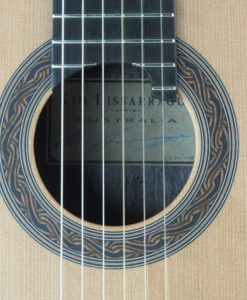 Kim Lissarrague est un luthier que nous connaissons bien. Ses guitares ont été plébiscitées pas un grand nombre de guitaristes concertistes. Ses guitares classiques offrent un compromis entre la projection ‘Australienne’ Lattice et la sonorité classique traditionnelle. Nous avons demandé à Kim Lissarrague de revoir certains points et notamment son vernis qui est un vernis à l’eau qu’il utilise pour des raisons écologiques et de santé. Cette nouvelle guitare bénéficie d’un nouveau vernis nitrocellulose toujours à l’eau qui est plus résistant.