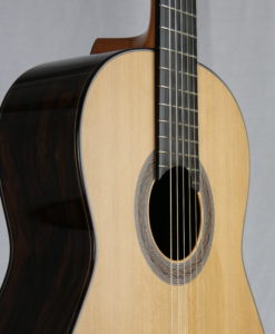 Kim Lissarrague est un luthier que nous connaissons bien. Ses guitares ont été plébiscitées pas un grand nombre de guitaristes concertistes. Ses guitares classiques offrent un compromis entre la projection ‘Australienne’ Lattice et la sonorité classique traditionnelle. Nous avons demandé à Kim Lissarrague de revoir certains points et notamment son vernis qui est un vernis à l’eau qu’il utilise pour des raisons écologiques et de santé. Cette nouvelle guitare bénéficie d’un nouveau vernis nitrocellulose toujours à l’eau qui est plus résistant.Superbe projection, de la clarté et de la tenue, combinées à une sonorité pleine et riche en caractère. Les aiguës sont clairs et fruités, les basses sont rondes et puissantes « impression violoncelle ». Paradoxalement brillant et souple.Une guitare d’exception à découvrir pour votre plus grand bonheur. Une référence et notre best -sellersA titre anecdotique la n° 140 a été achetée par un guitariste averti du sud de la France qui est allé faire en février une master classe à Portland avec .. Ana Vidovic. La surprise a été totale : pour le guitariste qui a pu jouer devant la belle Ana et aussi pour Ana Vidovic qui a découvert notre Lissarrague. Résultat: elle a testé notre instrument pendant plus d’une demi-heure.. sa Redgate faisait bien pâle figure dixit notre acheteur. Nous en sommes au numéro 363…Le confort de jeu est incroyable, facilité et souplesse sont au rendez-vous! Le galbe du manche est proche de la perfection même pour le guitariste le plus exigeant. La tenue de l’accord est impeccable, les mécaniques Pagos sont non seulement belles mais aussi très efficaces. La guitare sonne sans aucun effort, riche en harmoniques, sa projection et sa dynamique sont fabuleuses sans agressivité avec une large palette sonore sous vos doigts. il faut les essayer pour se rendre-compte de la qualité d’un tel instrument.Une guitare impressionnante pour sa puissance et le fruité des ses aigus. Des basses époustouflantes et une facilité de jeu déconcertante.Un rapport qualité prix incroyable à comparer à des guitares vendues bien plus chers. Profondeur et chaleur… Grande musicalitéL’une de nos meilleures références en ce qui concerne la guitare australienne (Jim Redgate, Simon Marty, Greg Smallman, Zbigniew Gnatek, Paul Sheridan) et la guitare de concert tout simplement.