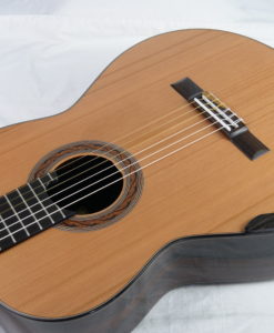 Kim Lissarrague est un luthier que nous connaissons bien. Ses guitares ont été plébiscitées pas un grand nombre de guitaristes concertistes. Ses guitares classiques offrent un compromis entre la projection ‘Australienne’ Lattice et la sonorité classique traditionnelle. Nous avons demandé à Kim Lissarrague de revoir certains points et notamment son vernis qui est un vernis à l’eau qu’il utilise pour des raisons écologiques et de santé. Cette nouvelle guitare bénéficie d’un nouveau vernis nitrocellulose toujours à l’eau qui est plus résistant.Superbe projection, de la clarté et de la tenue, combinées à une sonorité pleine et riche en caractère. Les aiguës sont clairs et fruités, les basses sont rondes et puissantes « impression violoncelle ». Paradoxalement brillant et souple.Une guitare d’exception à découvrir pour votre plus grand bonheur. Une référence et notre best -sellersA titre anecdotique la n° 140 a été achetée par un guitariste averti du sud de la France qui est allé faire en février une master classe à Portland avec .. Ana Vidovic. La surprise a été totale : pour le guitariste qui a pu jouer devant la belle Ana et aussi pour Ana Vidovic qui a découvert notre Lissarrague. Résultat: elle a testé notre instrument pendant plus d’une demi-heure.. sa Redgate faisait bien pâle figure dixit notre acheteur. Nous en sommes au numéro 363…Le confort de jeu est incroyable, facilité et souplesse sont au rendez-vous! Le galbe du manche est proche de la perfection même pour le guitariste le plus exigeant. La tenue de l’accord est impeccable, les mécaniques Pagos sont non seulement belles mais aussi très efficaces. La guitare sonne sans aucun effort, riche en harmoniques, sa projection et sa dynamique sont fabuleuses sans agressivité avec une large palette sonore sous vos doigts. il faut les essayer pour se rendre-compte de la qualité d’un tel instrument.Une guitare impressionnante pour sa puissance et le fruité des ses aigus. Des basses époustouflantes et une facilité de jeu déconcertante.Un rapport qualité prix incroyable à comparer à des guitares vendues bien plus chers. Profondeur et chaleur… Grande musicalitéL’une de nos meilleures références en ce qui concerne la guitare australienne (Jim Redgate, Simon Marty, Greg Smallman, Zbigniew Gnatek, Paul Sheridan) et la guitare de concert tout simplement.