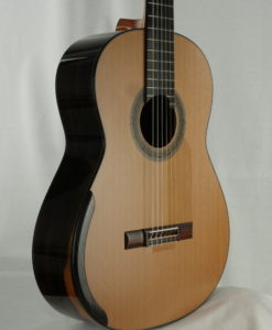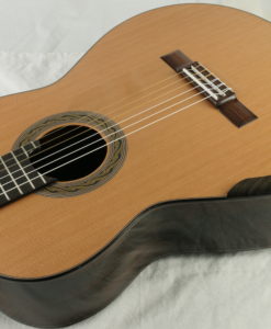 Kim Lissarrague est un luthier que nous connaissons bien. Ses guitares ont été plébiscitées pas un grand nombre de guitaristes concertistes. Ses guitares classiques offrent un compromis entre la projection ‘Australienne’ Lattice et la sonorité classique traditionnelle. Nous avons demandé à Kim Lissarrague de revoir certains points et notamment son vernis qui est un vernis à l’eau qu’il utilise pour des raisons écologiques et de santé. Cette nouvelle guitare bénéficie d’un nouveau vernis nitrocellulose toujours à l’eau qui est plus résistant.Superbe projection, de la clarté et de la tenue, combinées à une sonorité pleine et riche en caractère. Les aiguës sont clairs et fruités, les basses sont rondes et puissantes « impression violoncelle ». Paradoxalement brillant et souple.Une guitare d’exception à découvrir pour votre plus grand bonheur. Une référence et notre best -sellers.
