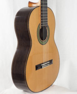 C’est la 4 e guitare double-table que nous recevons de Reza, et celle-ci surpasse encore les précédentes. Reza a travaillé pour avoir un peu plus de volume et plus d’épaisseur sonore. Ses guitares classique sont peut-être les guitares les plus proches des guitares classiques du luthier Matthias Dammann. Comme à l’accoutumé, tout est parfait, le réglage, la taille du manche. Elle procure un plaisir de jeu immense. Regardez la review vidéo de Philippe, que peut on attendre de plus d’une guitare ?