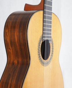 Il suffit d’écouter le Zagreb Guitar Quartet pour apprécier toutes la perfection sonore des guitares de Simon. Esthétiquement ses guitares sont magnifiques avec des bois de qualité exceptionnelles et un détail de lutherie très abouti. Le choix entre le cèdre et l’épicéa n’est pas facile et nous vous conseillons de regarder la vidéo que nous avons faite à ce sujet.