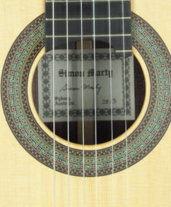 Il suffit d’écouter le Zagreb Guitar Quartet pour apprécier toutes la perfection sonore des guitares de Simon. Esthétiquement ses guitares sont magnifiques avec des bois de qualité exceptionnelles et un détail de lutherie très abouti. Le choix entre le cèdre et l’épicéa n’est pas facile et nous vous conseillons de regarder la vidéo que nous avons faite à ce sujet.
