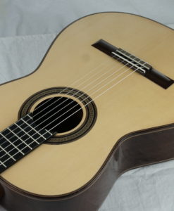 Pour cette guitare 2023, nous avons sélectionné avec Mario Aracama un magnifique set de palissandre de Madagascar et une table en épicéa avec un barrage trés léger.