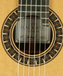 Martin Blackwell ne fabrique pas de double-tables mais des guitares classiques magnifiques qui se trouvent être … des double tables. Lors de notre première rencontre, voici ce que nous a avoué Martin :’Mon objectif avec mes double-tables est de fabriquer des guitares qui offrent des qualités exceptionnelles qui restent dans l’esprit des guitares traditionnelles: une guitare classique avec plus de puissance, plus de résonance, plus de présence. Une guitare classique plus complexe qui puisse remplir pleinement une salle de concert mais qui conserve toute sa subtilité dans un salon d’appartement. Si certaines double tables ou guitare classique Lattice peuvent sonnent plus forts, mes guitares double table conservent avant tout la qualité sonore d’une excellente guitare classique.