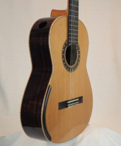 ‘Nous sommes fiers de vous faire découvrir un luthier qui excelle dans l’art des double tables. Parmi les talentueux luthiers canadiens, Martin Blackwell est un des rares à nous offrir des guitares classiques d’une consistance remarquable avec des voix profondes, un équilibre et une facilité de jeu impressionnante. Ses double tables sont réactives, puissantes avec une large palette de dynamiques, un sustain généreux, une voix trés chaleureuse trés timbrée et une précision dans la séparation des notes. 100% de plaisir..