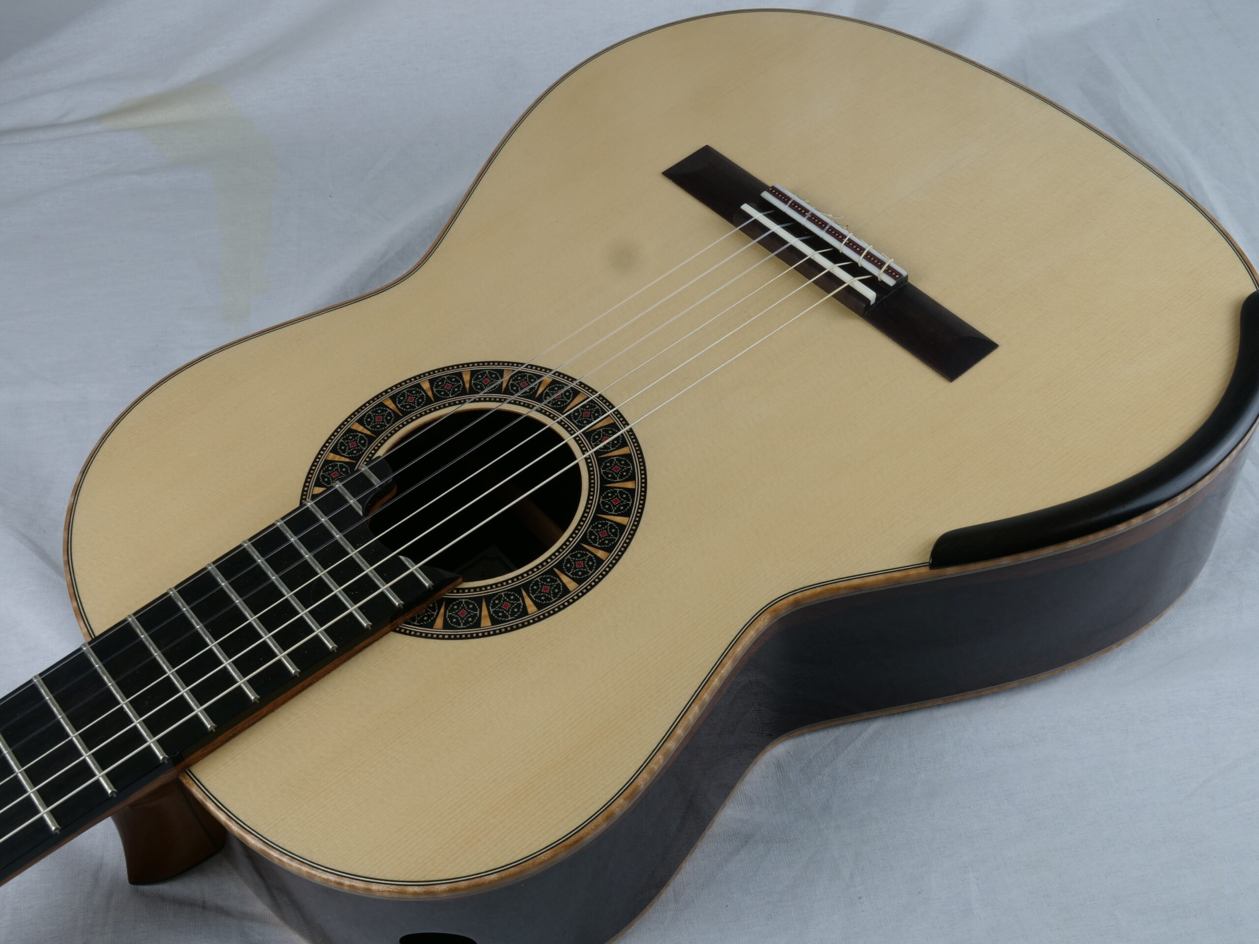 Martin Blackwell ne fabrique pas de double-tables mais des guitares classiques magnifiques qui se trouvent être … des double tables. Lors de notre première rencontre, voici ce que nous a avoué Martin :’Mon objectif avec mes double-tables est de fabriquer des guitares qui offrent des qualités exceptionnelles qui restent dans l’esprit des guitares traditionnelles: une guitare classique avec plus de puissance, plus de résonance, plus de présence. Une guitare classique plus complexe qui puisse remplir pleinement une salle de concert mais qui conserve toute sa subtilité dans un salon d’appartement. Si certaines double tables ou guitare classique Lattice peuvent sonnent plus forts, mes guitares double table conservent avant tout la qualité sonore d’une excellente guitare classique.