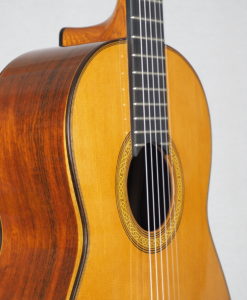 Une preuve absolue de la qualité sonore de leurs guitares classiques. Michael et son fils fabrique en moyenne 9 guitares par an et ont environ deux années d’attente. Ils nous font l’honneur de nous fabriquer une guitare par an.