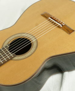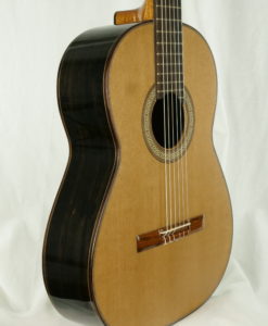 Comme à l’accoutumé, on est avant tout frappé par la beauté de la sonorité – ni trop claire, ni trop sombre – avec une très grosse épaisseur sonore sans aucune connotation ‘lattice’. Les basses sont expressives à souhait sans être envahissantes. les aigus cristallins et fruités. Il y a quelque chose que l’on retrouve aussi dans les guitares de Simon Marty, une polyphonie et avec cependant des médiums élégants plus présents. C’est un honneur pour nous car Michael & Alec ont plusieurs années d’attente sur sa liste. Beaucoup de présence et beaucoup de musicalité et d’expressivité pour une guitare de grande lutherie.