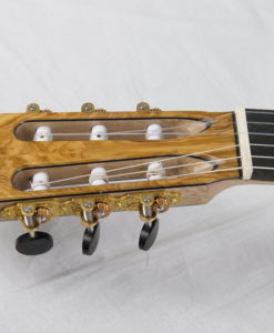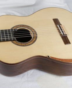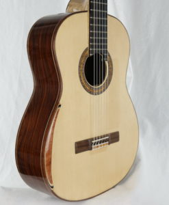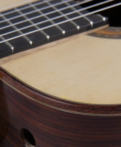 Les guitares classiques de Paul Sheridan sont typiques de la lutherie australienne lattice avec des guitares d’une qualité musicale qui fait référence. Un dos et des éclisses en mélaminé et une table très fine avec un support interne en balsa et un barrage en lattice / croisillons. Cette guitare classique avec sa table en épicéa se positionne clairement du côté des guitares lattice à la Greg Smallman avec cependant sa propre personnalité. Cette guitare est une rare à avoir une table en épicéa qui apporte une belle séparation des voix et une complexité harmonique aux notes. Paul ne fabrique que 4 guitares par an.