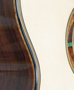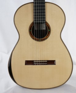 Voici la nouvelle guitare 2023 du luthier allemand Philipp Neumann. Cette édition 2023 est une commande spéciale avec un corps en palissandre de Madagascar et des mécaniques Scheller. Le résultat est parfait. Cette guitare n’a de traditionnelle que son nom et sa sonorité : elle intègre une réflexion poussée sur la table d’harmonie. Celle-ci a pour objet de permettre à la guitare de rivaliser avec les guitares lattice et double-tables en matière de puissance tout en offrant une sonorité traditionnelle ample et majestueuse. Un résultat époustouflant (regardez la revue vidéo), une meilleure définition sonore avec un long sustain !