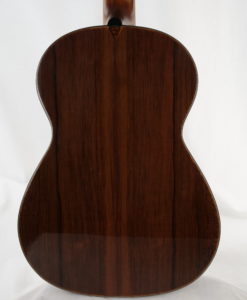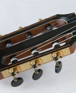 Philipp Neumann est un jeune luthier qui a fait ses classes en Allemagne à Leipzig où il a ouvert son atelier en 2004. Il a notamment fait ses classes chez le fameux luthier allemand Stephan Schlemper.C’est au détour d’un salon de lutherie en Belgique que nous avons découvert Philipp Neumann où maintenant il réside. Ces guitares nous ont tout de suite plu de par la qualité sonore trés traditionnelle avec cependant une amplitude et une flexibilité sonore hors du commun. La qualité de jeu est exceptionnelle avec une notion de plaisir impressionnante due à l’épaisseur sonore des notes et l’amplitude en matière de puissance.Une fois n’est pas coutume, nous avons demandé donc au luthier allemand Philipp Neumann de nous fabriquer une guitare pour le showroom. Cette guitare de concert n’a de traditionnelle que son nom : elle intègre une réflexion poussée sur la nature de la table . Celle-ci a pour objet de permettre à la guitare de rivaliser avec les guitares lattice et double-tables en matière de puissance tout en offrant une sonorité traditionnelle ample et majestueuse en conservant une certaine épaisseur et son caractère boisé. La table en cèdre est creusée à l’intérieur pour accueillir des barres de renfort en cèdre qui viennent durcir la table sans pour cela l’alourdir. La table est en effet creusée à l’intérieur et héberge plusieurs barres de cèdre qui viennent raidir la table et la renforcer sans ajouter de poids. Ensuite l’on trouve un barrage traditionnel.Le renforcement de la table ainsi durci permet d’amplifier les vibrations et le rendu sonore.La lutherie est exemplaire comme le montre la rosace qui incorpore de pierres de malachite. La sonorité est résolument ouverte avec un sustain sur toute les notes , des basses profondes et des aigus cristallins. La table en cèdre rééquilibre cette guitare en ajoutant de beaux médium.A découvrir au plus vite !