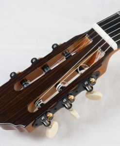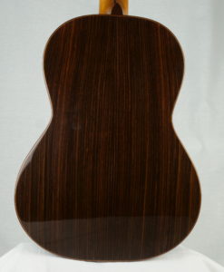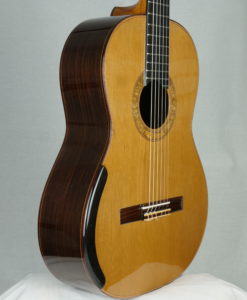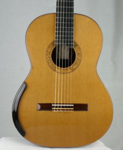 A notre demande Régis Sala a réalisé quelques aménagements à mon modèle Australe, en renforçant le dos et les éclisses. La table reste en cèdre avec un barrage en croisillon en balsa et carbone mais se trouve soutenu par une structure. Le résultat est au delà de nos attentes avec une guitare puissante et généreuse toute en rondeur. Les notes sont épaisses et rondes avec une dynamique progressive qui donne une impression de puissance.Donc pour cette guitare, nous avons :