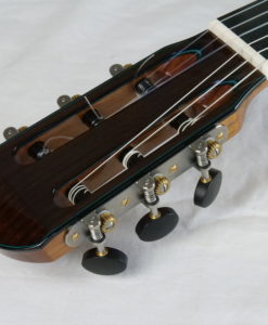 La guitare comporte une table en épicéa torréfiée Val di Fiemme, un barrage en cèdre en croisillon sans balsa et sans carbone, et enfin une corps doublé avec de l’érable. Le résultat est purement fantastique, puissance et épaisseur sonore avec des sonorités cristallines. Regardez la tête, elle est de toute beauté.