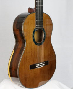 L’Italie regorge excellent luthiers qui fabriquent pour la plupart des guitares traditionnelles avec des table en épicéa. Nous sommes heureux de vous présenter l’un des trés rares luthiers italiens dont le concept de fabrication s’inspirent des lattice Australiennes avec une personnalité toute ‘italienne’ : une guitare surpuissante de toute beauté sans carbone ni balsa. Ecoutez les vidéos de Kanahi Yamashita (la fille de Kazuhito), elle a choisi de jouer sur une guitare de Rinaldo, c’est simplement magnifique.La guitare comporte une table en épicéa torréfiée Val di Fiemme, un barrage en cèdre en croisillon sans balsa et sans carbone, et enfin une corps doublé avec de l’érable. Le résultat est purement fantastique, puissance et épaisseur sonore avec des sonorités cristallines. Regardez la tête, elle est de toute beauté.Les guitares des Rinaldo Vacca sont construites avec un barrage en croisillons (lattice), en utilisant du cèdre et non du balsa, et sans l’utilisation de carbone. Les éclisses sont en trois couches, le dos en deux couches laminées d’érable, pour le manche cèdre ou acajou kahya. Le vernis est un vernis l’acrylique et les mécaniques Exagon avec un design personnalisé.Petite Biographie de Rinaldo VaccaRinaldo Vacca est né à Cabras (Sardaigne) en 1960, il a commencé à construire des guitares à la fin des années 80. Il a commencé par construire des guitares traditionnelles, puis devant les besoins des guitaristes d’avoir un instrument plus sonore il a changé la méthode de construction. Son objectif est de fabriquer des guitares puissantes sans perdre en qualité tonale. Rinaldo est basé en Sardaigne à Cabras.