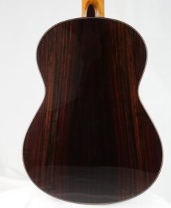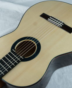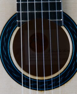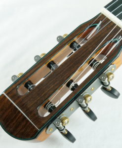 La guitare comporte une table en épicéa torréfiée Val di Fiemme, un barrage en cèdre en croisillon sans balsa et sans carbone, et enfin une corps doublé avec de l’érable. Le résultat est purement fantastique, puissance et épaisseur sonore avec des sonorités cristallines. Regardez la tête, elle est de toute beauté.Les guitares des Rinaldo Vacca sont construites avec un barrage en croisillons (lattice), en utilisant du cèdre et non du balsa, et sans l’utilisation de carbone. Les éclisses sont en trois couches, le dos en deux couches laminées d’érable, pour le manche cèdre ou acajou kahya. Le vernis est un vernis l’acrylique et les mécaniques Exagon avec un design personnalisé.