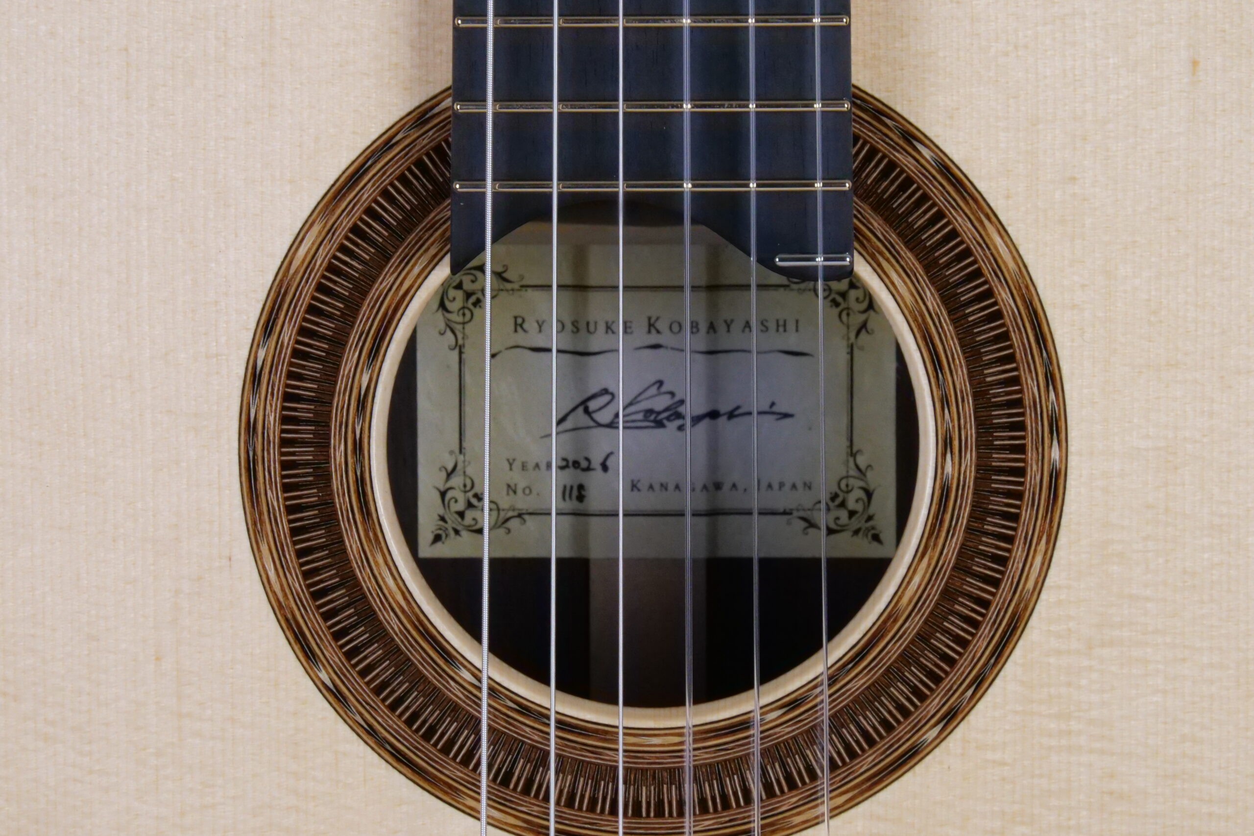 Voici quelques verbatim de Ryosuke : « J’ai appris la mécanique des structures à l’université mais je l’ai abandonnée pour certaines raisons. Et j’ai commencé à apprendre la fabrication de guitares. Après 7 ans de formation dont 2 ans de programme d’apprentissage sous la direction de Sergei de Jonge et 3 ans de programme d’apprentissage sous la direction de Kenji Sugita (http://www.sugitakenji.com), j’ai lancé ma propre entreprise en 2014. Aujourd’hui, je fabrique environ 12 guitares par an. année non seulement pour le guitariste classique mais aussi pour les musiciens de musique brésiliens, les musiciens de jazz, les joueurs de steel strings.