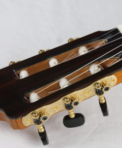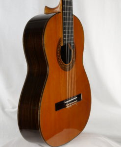 Saied Aboutalebian est un jeune luthier Iranien basé en Espagne à Barcelone. Il a fabriqué des instruments traditionnels Iraniens avant de concevoir des guitares classiques il y a quelques années. Cette dernière guitare 2023 n°51 est une double-table qui n’a rien à envier à ses cousines d’Outre-Rhin. Légère et puissance, cette double-table – cèdre et balsa – est impressionnante de rondeur. La lutherie est sans défaut la sélection des bois parfaite. Sans aucun doute, cette double-table n’a rien à envier aux plus grandes DT (Wagner, Dammann, …), et compte parmi ses adeptes de grands guitaristes comme Alvaro Pierri – professeur de guitare au conservatoire de Vienne.