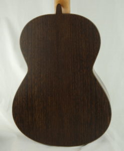- Dos et éclisses en Wenge (Millettia laurentii), densité de 830 Kg/m3 identique à celle du Palissandre indien