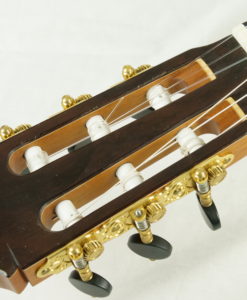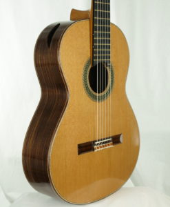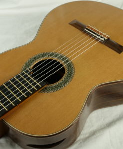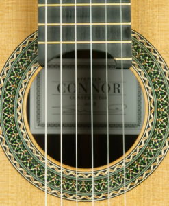 Stephan Connor est un luthier américain reconnu qui fabrique des guitares de facture légère et dotée d’une table avec un  barrage lattice tout en bois (lattice donc mais sans carbone ni balsa). L’objectif est d’obtenir plus de puissance tout en gardant une sonorité boisée. Cette 2023, comme toutes les Connor offre un gros son immédiat, trés directe – le dos et les éclisses sont de structures légères – mais aune une couleur claire et traditionnelle. Ses guitares sont jouées par des guitaristes célèbres(Anabelle Montesinos, Marco Tamayo,  ou Eliot Fisk) qui privilégient la puissance et une certaine immédiateté.