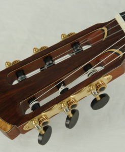 Nous avons rencontré Thomas Eichert au dernier festival de guitare de Coblence et nous avons découvert qu’au pays des guitares traditionnelles et double-tables, il y a un luthier qui fabrique des guitares lattice. Bien sûr, Les guitares de Thomas se différencient substantiellement des imposantes lattice australiennes, elles offrent une belle puissance sonore et avec un son chaud. La sonorité est assez traditionnelle mais avec une grande dynamique qui laisse beaucoup de liberté au musicien. Le look est résolument moderne et classieux avec une marqueterie sophistiquée et de nombreuses incrustations élégantes. La rosace et la tête sont tout simplement magnifiques.
