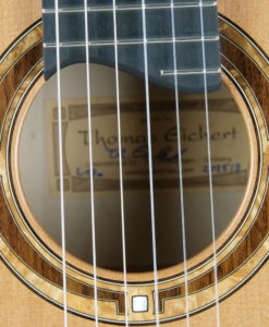 Voici comment Thomas décrit sa guitare : « un son puissant, des aigus chauds et chantants, une attaque rapide, une excellente sélectivité, bref, tout ce qu’il faut pour remplir une salle de concert avec son son. Je n’utilise que des bois séchés à l’air libre, âgés d’au moins dix ans, voire de vingt ans ou plus. Comme une membrane, la table d’harmonie doit être capable d’amplifier et de diffuser les vibrations des cordes de manière équilibrée. Pour cela, la table est travaillée en différentes épaisseurs en fonction du type de bois et de sa résistance, et rigidifiée par un barrage intérieur pour supporter la tension des cordes. »