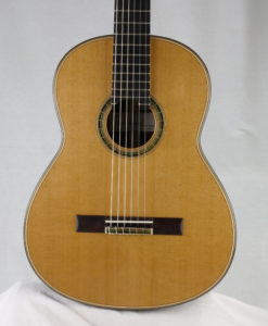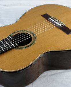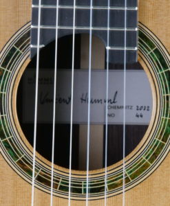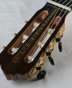 Pour ne rien gâcher, la lutherie est tout simplement merveilleuses avec une rosace et des incrustations d’une grande élégance.Le réglage est parfait. Voici quelques éléments d’information sur les guitares de Vasilis :